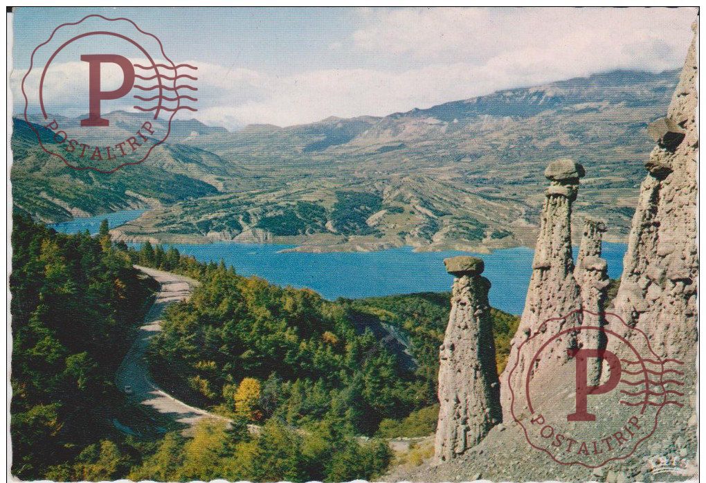BARRAGE DE SERRE-PONÇON, Le lac, les cheminées des Fées du Sauze et les montagnes de GAP, 1951
