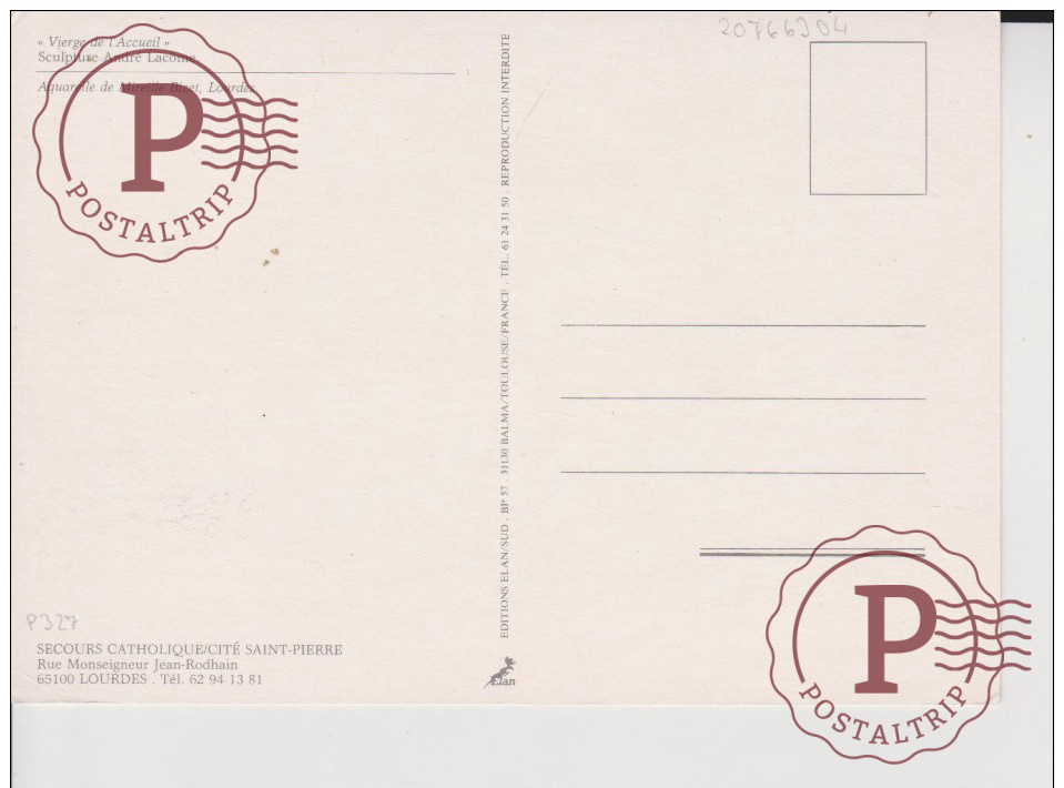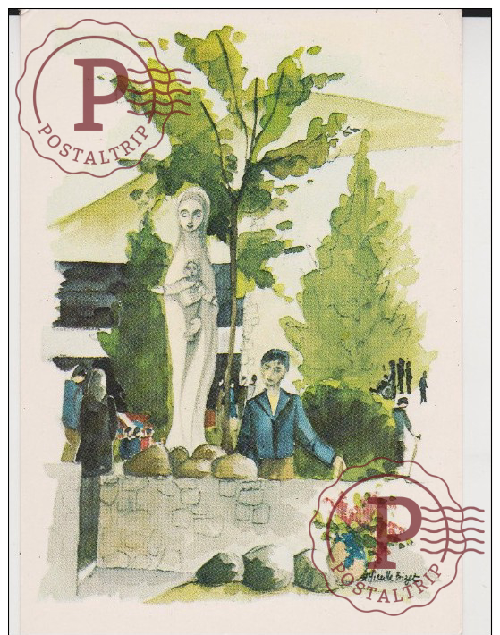 Lourdes - Vierge de l´Accueil (sculpture André lacôme) Aquarelle M. Bizet