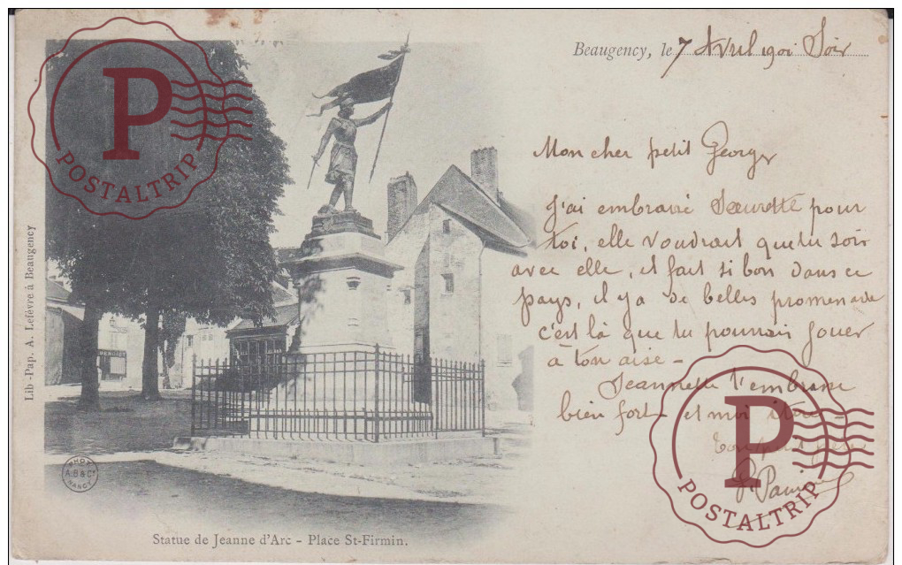 STATUE DE JEANNE D´ARC PLACE ST FIRMIN BEAUGENCY 1901