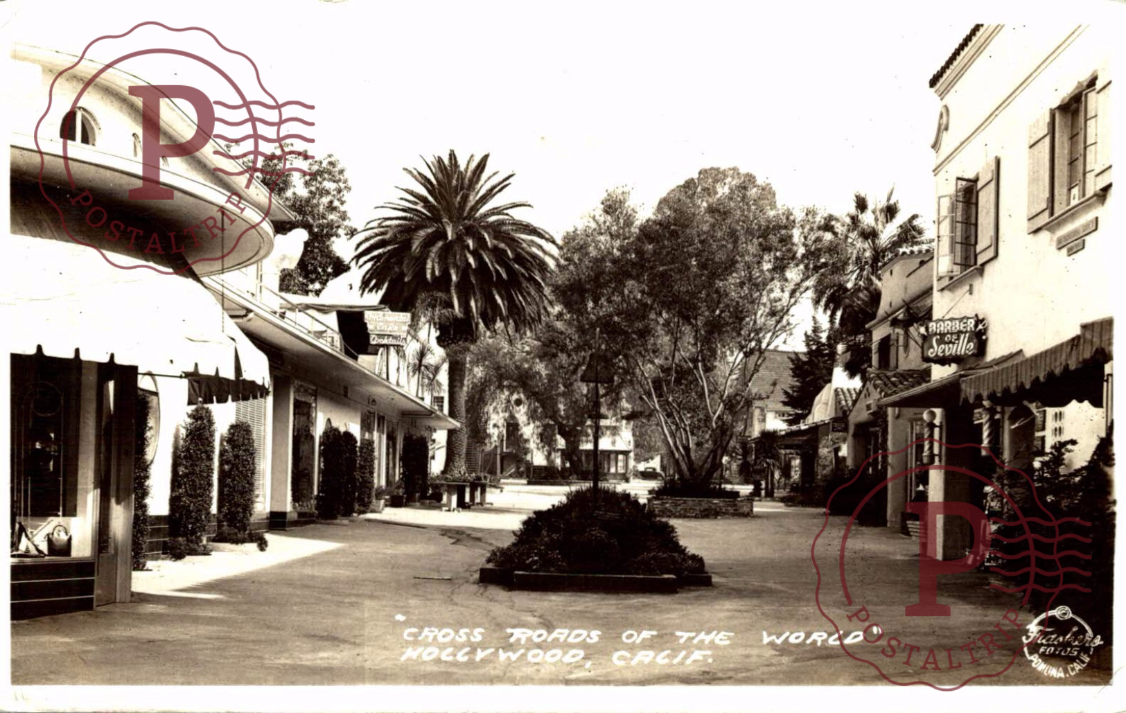 REAL PHOTO POSTCARD Hollywood “World Cross Roads” RPPC Vintage Los Angeles Photo FRASHERS Barber